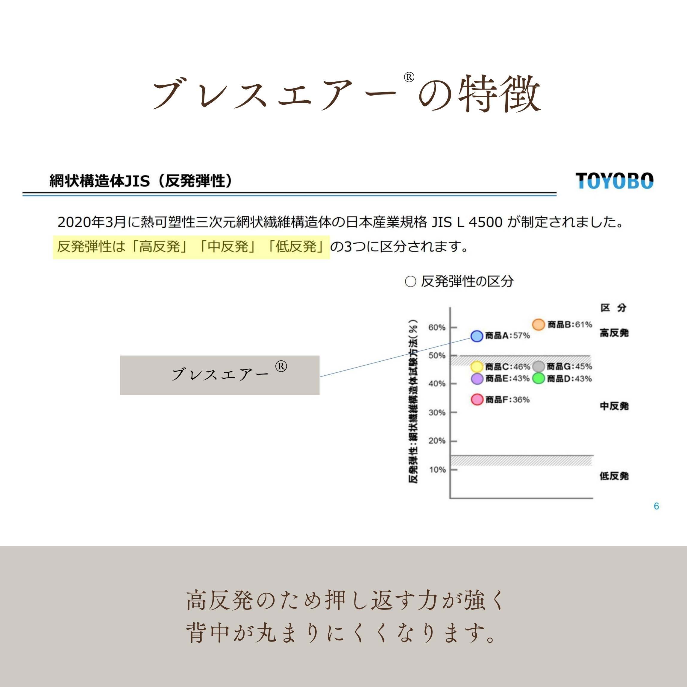 高反発素材のブレスエアー®を中材に使用